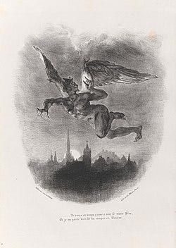 Mephistopheles is first mentioned by name in late 1500s Germany, where he is used in relation to describing the alchemist Faust. Shakespeare and Goethe would incorporate this figure into their own works and give us a more fleshed-out view of Mephistopheles as the figure which Faust makes a bargain with to act as an agent of the devil. He is regarded as a messenger of Satan, and operates through negation, corruption, lying and cheating. With this, however, he can be incredibly smart and charming.