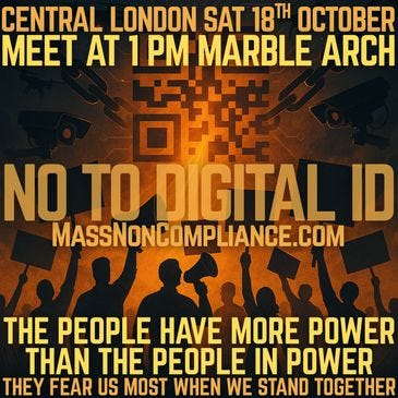 This is the message I’ll be bringing to the upcoming Say No To Digital ID demonstration happening later this week in London. Although I’m not normally drawn to these sorts of events, I do believe there is value in connecting with those who see the pitfalls of the Digital ID project - and those who can be shown that there is far more to be concerned about than simply “BritCard” - and to encourage them to look beyond what they stand “against” and instead look at what they stand “for”.